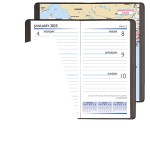 Weekly pocket planner. Saddle stitched. Full color printing. 12 months Jan-Dec. Horizontal format. One month per opening. Famous quotes on each month. Dates to remember section. Frequently called numbers. Personal info section. 16 pages 4 color US maps. 6 1/2″ L x 3 1/2″ W