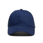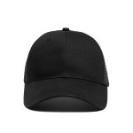 These trucker-style caps are made with 2 front cotton panels and 4 back mesh panels. Designed with a pre-curved visor and an adjustable plastic snap buckle. One size fits most.