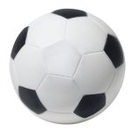 Stress reliever in sports shape Soccer. This product is not a toy and is not safe for use by children under 3 or pets. Please note: because each polyurethane stress ball is manufactured by hand, no two balls are exactly alike. Factory is not responsible if imprint is not completely legible. Imprint will break and appear uneven due to the textured surface. 2.5″ W x 2.5″ H x 2.5″ D