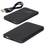 Soft-Touch 4000mAh Hi-Density Polymer Power Bank has a slim design, made of PC & ABS, with a soft-touch rubber coated surface and 4 LED power indicatory lights. Includes USB & USB Type-C ports with a USB-Type-C to regular USB cord included. Powered by a UL certified Li-Polymer battery. Complies with Prop 65, UL, UN38.3. 2.625″ L x 0.25″ W x 4.5″ H