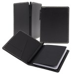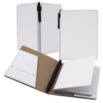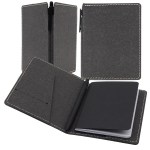 Cover all your promotional bases during the next campaign by handing out the Soho leather Commuter cover with classic Commuter book. Available in several colors and sizes, this slim and elegant cover comes with one classic commuter journal and one blank Rio pen, and it features a front pocket with a business card slot. It is refillable and can be customized with an imprint of your company logo and message for increased brand exposure. Complies with FSC, Prop 65. 4.25″ L x 5.5″ W