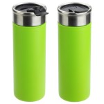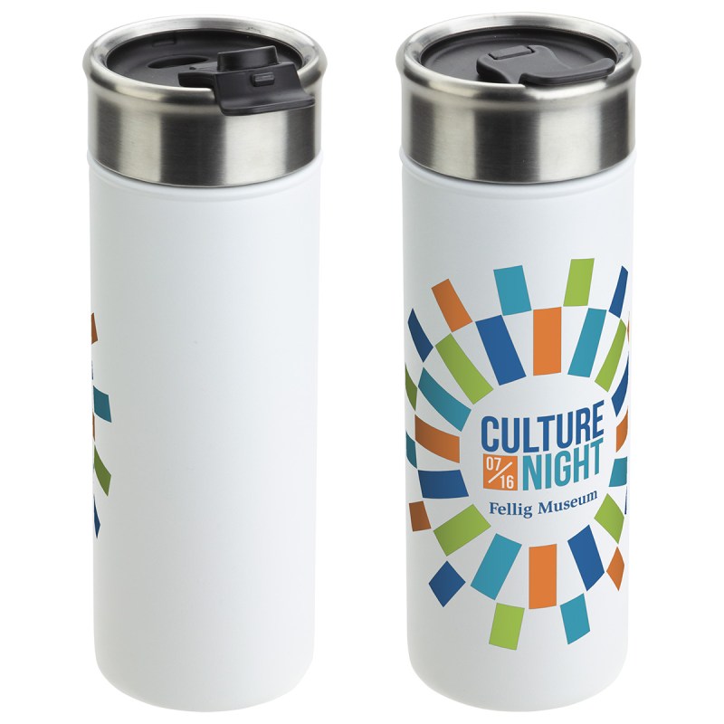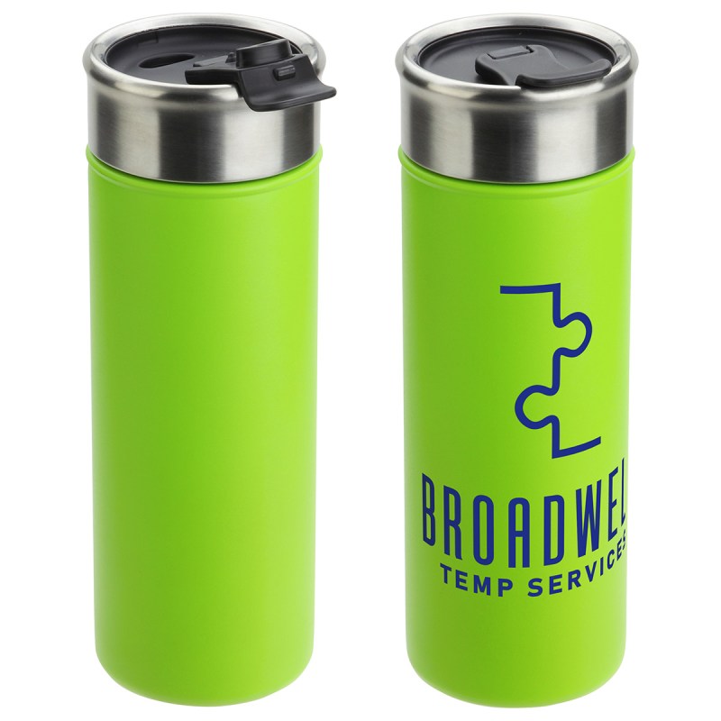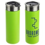 Solari 18 oz Copper-Lined Powder-Coated Insulated Tumbler features double-wall insulated 18/8 powder-coated stainless steel construction that keeps beverage hot or cold for up to 12 hours. Has a wide-mouth top opening and screw-on rubber-seal stainless steel cap with flip-top spout. Compatible with most vehicle cup holders. Hand wash only and should not be put in the microwave or freezer. Must be ordered in exact case quantities and may ship from CA location. BPA Free and FDA certified. Complies with FDA, Prop 65. 8″ H x 2.75″ Diameter