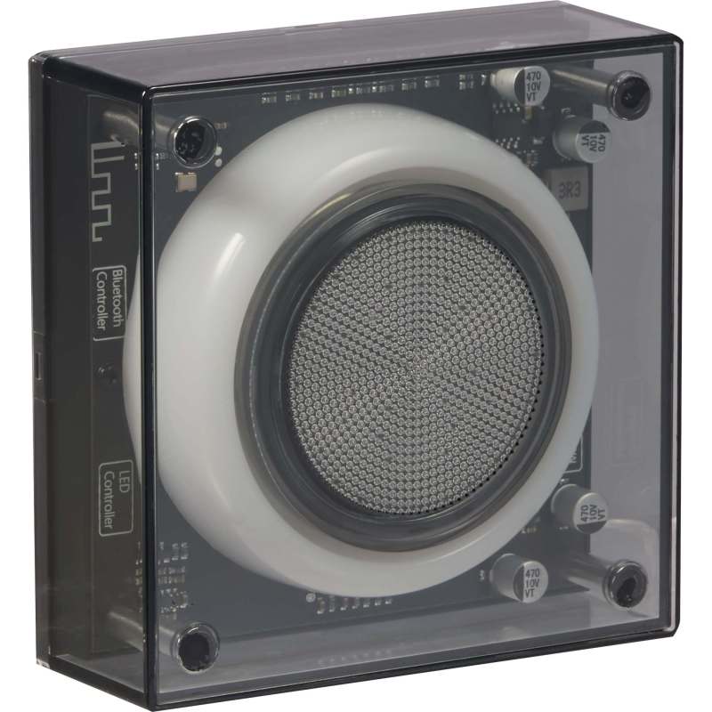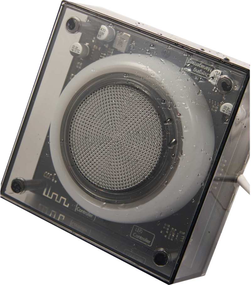The Solekickâ„¢ Clear Bluetooth Speaker is a must-see! It has a crystal-clear casing and an LED party light around the speaker driver. The LED light changes colors while your music is playing. You can connect the Solekick Clear with ninety-nine other Solekick Clear speakers! The speaker can play music for up to 7.5 hours at max volume in any condition. The IPX6 waterproof rating means it can withstand rain or a splash from the pool. It can be recharged within 3 hours with the provided USB Magnetic charging cable. Solekickâ„¢ Clear Bluetooth Speaker has a built-in microphone for conference calls. 3.70″ D x 3.70″ W x 1.37″ H