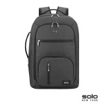 The Grand Travel TSA Backpack from the Solo New York Downtown Travel Collection is perfect for traveling and overnighters as it is TSA checkpoint friendly and has a 5″ deep center pocket with mesh zippered pockets and buckled garment straps to carry a change of clothes and toiletries. This bag also has a lie-flat TSA friendly, fully padded laptop compartment that fits 17.3″ laptops, ultrabooks and Macbooks. The front compartment is large enough to hold your important documents and has an organizer with pen loops and a zippered pocket. Keep your smaller items in the 3 front exterior zippered pockets. Youll travel comfortably with this backpack as it has a padded back and shoulder straps, trolley strap, 2 mesh side pockets to carry water bottles, and its easy to grab and carry with its side and top handles. Get the Grand Travel TSA Backpack that comes with a 5-year limited warranty before your next trip! Complies with Prop 65. 12 1/2″ W x 19″ H x 14 5/8″ D