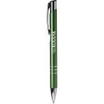 Sleek lines for high end appeal at a budget price. Shimmering soft fashion colors with shining silver accents. Smooth writing black ink. Complies with Prop 65. 5.45″ L x 0.4″ Diameter