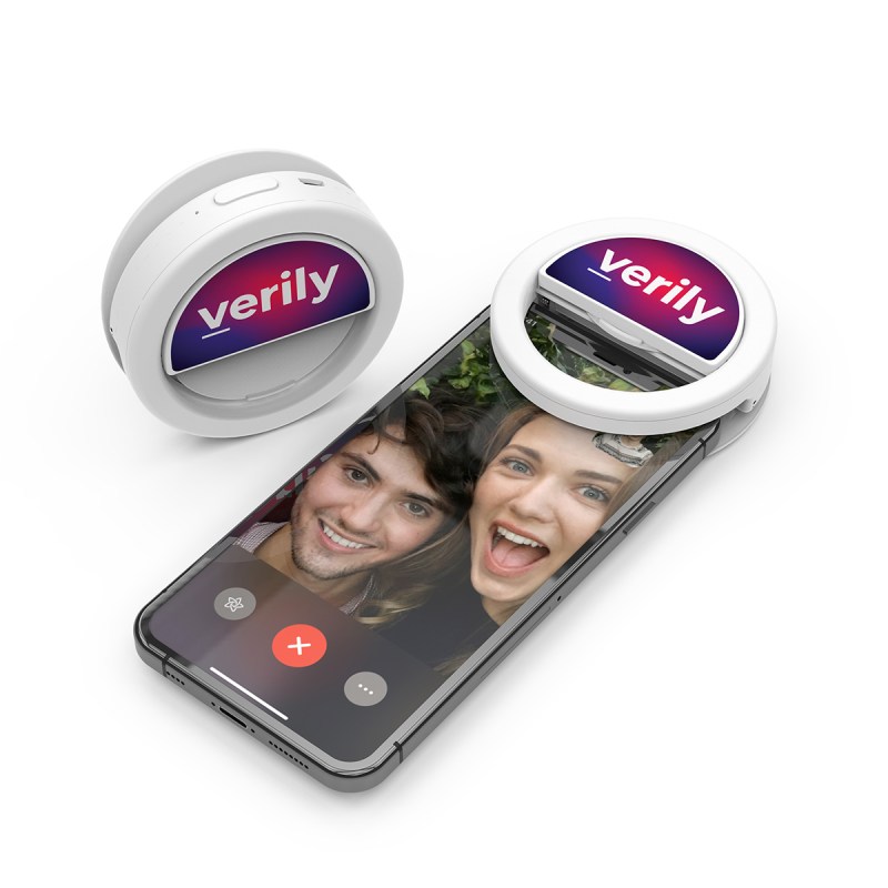 Includes Aura Clip-on Ring Light & UltraBuds Pricing Includes Full Color Imprint On Both Items And Box. Complies with Prop 65. 3.1″ W x 3.1″ H