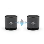 This set of 2 true wireless stereo speakers are 3 watts each with Ambient Harmonics Technology. They have a built-in microphone for handsfree phone call use. Up to 4 hours of playtime and wireless connectivity Bluetooth 5.0. 2.375″ W x 2.5″ H x 2.375″ D
