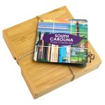 This State Puzzle Coaster Set with Case offers a natural solution for protecting tabletop. These sturdy coasters are crafted from organically-grown Moso® bamboo, an environmentally-friendly material solution that quickly re-grows once harvested. Bamboo is both lightweight & durable a perfect choice for coasters! The coaster set includes a handsome case to store coasters neatly when not in use. The coasters are easy to care for as well: simply wipe them with a damp cloth to clean. Complies with Prop 65. 4″ W x 4″ H