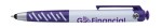 Unleash your creativity and relieve stress with this innovative twist-action pen designed with a playful joystick on the top that quietly keeps your hands busy. Deep hues on the clip, plunger, and comfortable rubber grip offset the white barrel of this versatile ballpoint. Equipped with a precise 1mm medium ballpoint and a handy stylus, it?s the perfect tool for both writing and relieving nervous energy without disturbing those around you. 60% of overall product is made of post-consumer recycled ABS plastic. 0.3750″ Diameter x 5.375″ L