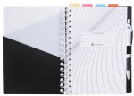 This plastic-cover notebook comes with all the bells and whistles! It boasts an inserted pen, interior pocket, 4 colored dividers, and 100 sheets FSC®-certified white lined paper. Use the elastic closure to keep everything neat and tidy as you go about your busy day. The FSC® label means that the materials used for this product come from well-managed FSC®-certified forests and other controlled sources.”. 6.875″ W x 8.625″ H x 1″ D