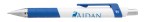The Rize Grip Pen features a colorful wraparound clip that includes a cut-out Souvenir® icon and a matching comfortable rubber grip. A crisp white barrel and chrome-plated plunger and tip create a nice contrast for a modern look. 0.4375″ Diameter x 5.5″ L