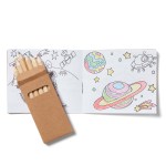 Impress your youngest clients and engage with them when you hand out this kids’ coloring book and six-color pencil set to-go! Measuring 4.25″ x 3.5″ with 12 pages, this book features space themed illustrations. The coloring book comes with six color pencils to help recipients create amazing art pieces. Add an imprint of your name, logo and promotional slogan. Complies with CPSIA. 4.25″ W x 3.5″ H
