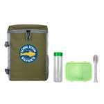 Introducing the innovative Speck Cooler Backpack featuring adjustable straps for maximum comfort. Our Lunch Kit To-Go includes a complete set of plastic utensils for convenience on the go. Keep your meals fresh in our Lunch To Go Container with a secure clip top. Stay hydrated with our Clear View 24 oz. Recycled Bottle, perfect for any beverage. The Fork, Knife, and Spoon cutlery set completes the package, making it easy to enjoy your meals anytime, anywhere. Experience the ultimate in portable dining with our high-quality products. Complies with FDA, Prop 65. 10″ L x 13″ H x 5.75″ W