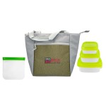 Introducing the eco-friendly Speck Recycled Cooler Tote, crafted from recycled PET materials. Keep your meals fresh and organized with our Square Portion Control Containers, designed for perfectly portioned and healthy meals. Say goodbye to single-use plastic bags with our Reusable Sandwich Bag featuring a convenient zip closure. Make a sustainable choice without compromising on quality and style with these environmentally friendly food storage solutions. Complies with FDA, Prop 65. 9″ L x 11.25″ H x 5.75″ W
