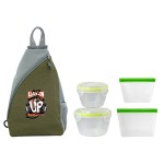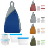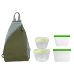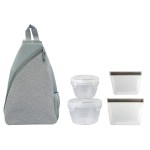 Introducing the versatile Speck Sling Cooler Bag, featuring an adjustable shoulder strap for easy carrying. Pair it with our convenient Nesting Locking Lid Bowl Set, complete with vented lids for freshness. Need more storage options? Our Medium and Large Reusable Food Storage Bags with secure zip closures are perfect for all your on-the-go needs. Upgrade your food storage game with these essential items today. Complies with FDA, Prop 65. 10″ L x 14.75″ H x 4.5″ W