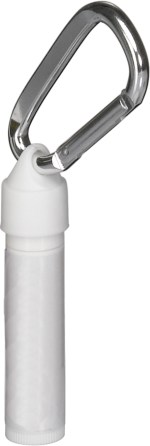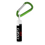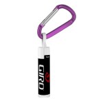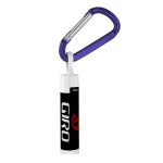 SPF 30 soy lip balm tube with carabiner clip. Beeswax and soy base. PABA Free. Complies with CPSIA, FDA, Prop 65. 2.625″ H x 0.625″ Diameter