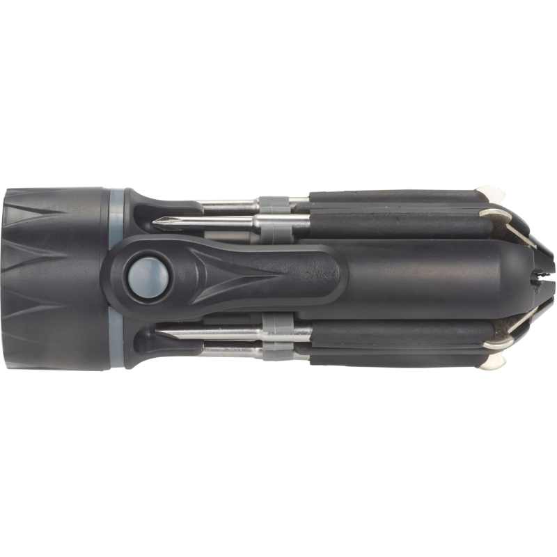 Get your senses ready for the Spidey 8-in-One Screwdriver Flashlight. Perfect to keep around the house, this tool has one LED light, three Phillips heads, three Flat heads, and a small eyeglass tool with screw on cap. Press the button once for the flashlight, and again for the LED to illuminate the tools. The flashlight includes three AAA batteries. 1.80″ D x 1.80″ W x 5.50″ H