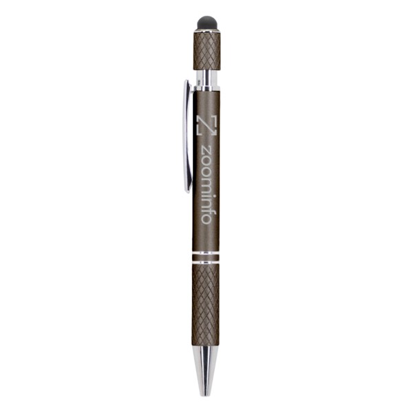 Crafted with a matte metallic aluminum barrel, this pen offers a lightweight yet durable design that’s comfortable to hold yet offers a remedy for all those boring meetings to fidget spin the top! The aluminum plunger cap provides a seamless click experience, includes a stylus and silicone tip, enabling precise interactions with touchscreens. With a 1.0mm German Dokumental ink cartridge, this pen guarantees a consistently smooth writing experience. 0.582″ W x 6″ L