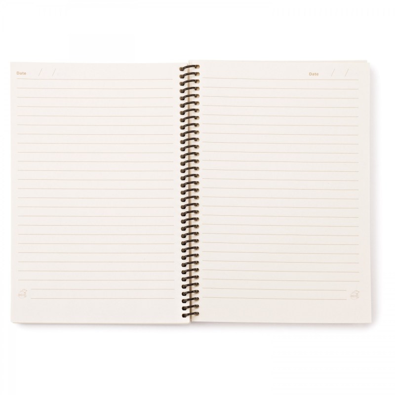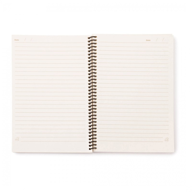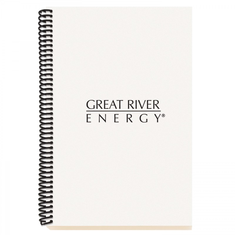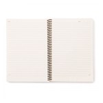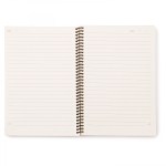 ECO notebook with black spiral binding, 13 pt soft cover and 144 ivory lined pages. Notebook pages and covers are colored with organic, soy based inks and are made in Canada with 100% recycled materials. Journal inner page dimension is 6″ x 9″. 6.2500″ L x 9.0000″ W x 0.0000″ H