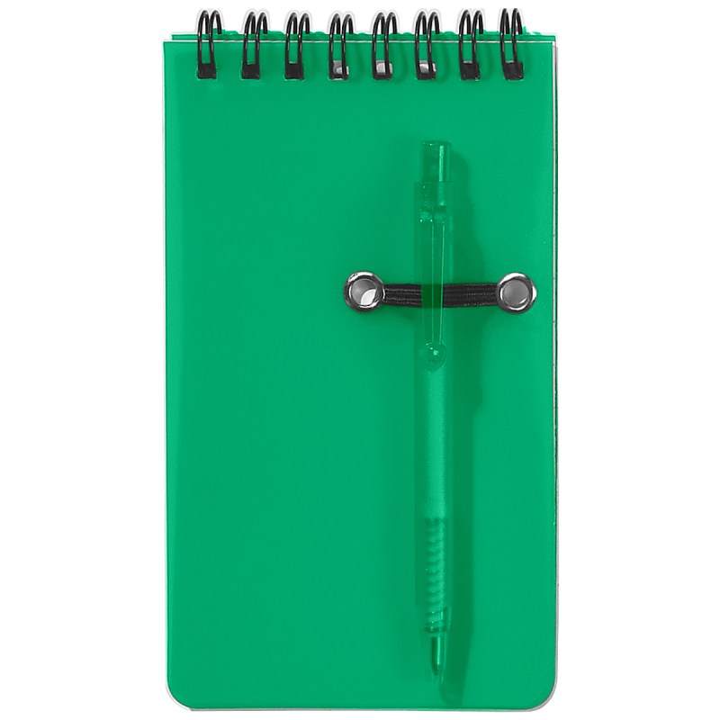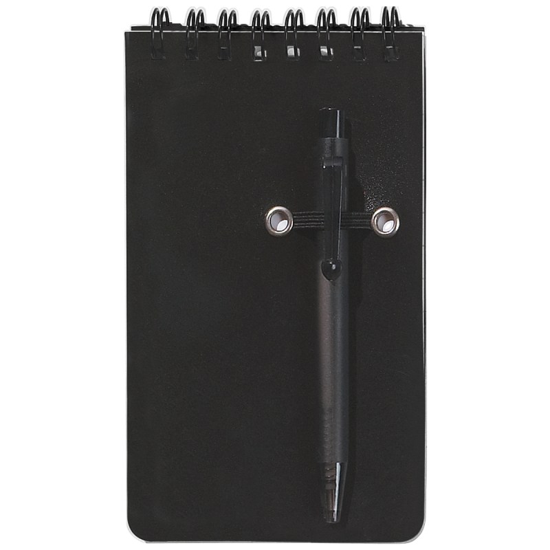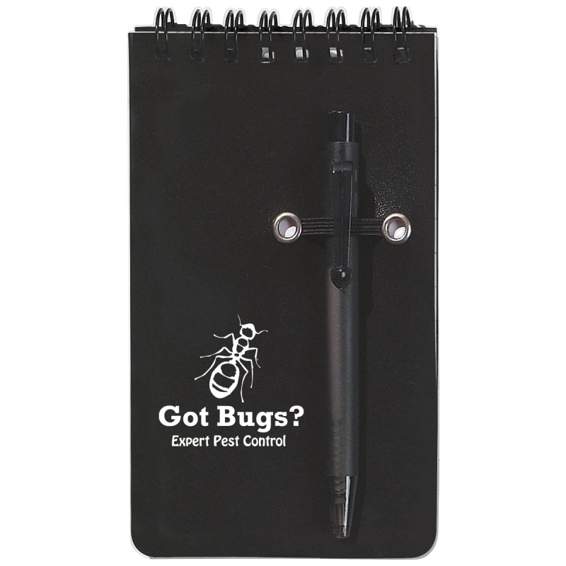 50 Page Lined Notebook. Elastic Pen Loop With Matching Pen. Complies with Prop 65. 3″ W x 5.5″ H