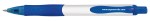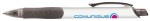 A bright white barrel is set off by translucent trim on this medium ballpoint pen. Its slightly contoured rubber grip will fit nicely in your hand. Complies with Prop 65. 0.4375″ Diameter x 5.625″ L