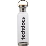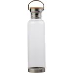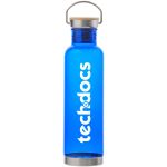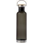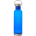 This Sports Bottle will keep you hydrated and show off your logo! A plastic bottle with a bamboo lid and metal bottom. Large 27 ounce capacity for maximum hydration; screw on metal cap with handle. BPA Free; Hand wash only; intended for cold beverages only. Fits in most cup holders. Add your screen printed custom message and logo. Complies with Prop 65.