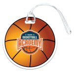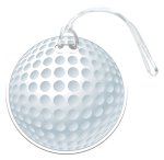 Add even more customization to your luggage tags by choosing from a handful of sport ball themes. Choose from basketball, golf, baseball, soccer and more! 60 mil (1/16th inch) thick styrene plastic with a matte finish. Clear loop strap and address sticker included (Unattached) – tag, loop, and address sticker are all bulk packaged. Complies with Prop 65. 3 1/2″ Diameter