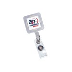 Perfect Value Square Retractable Badge Holder with 30″ long nylon cord, with swivel alligator clip on back. 1.25″ W x 3.25″ H x 0.625″ D