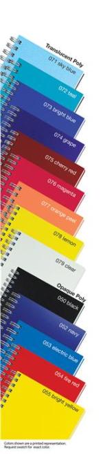 Our Square Journal features a 30 pt. translucent or opaque poly cover. Choose between a foil stamped cover in 1 standard color or a blank cover with a custom insert sheet printed full color on 1 side. Includes 50 Lb. white offset sheets with light gray rules printed on 1 side. Comes Wire-O bound on the left or on top. 3 11/16″ W x 3 11/16″ H