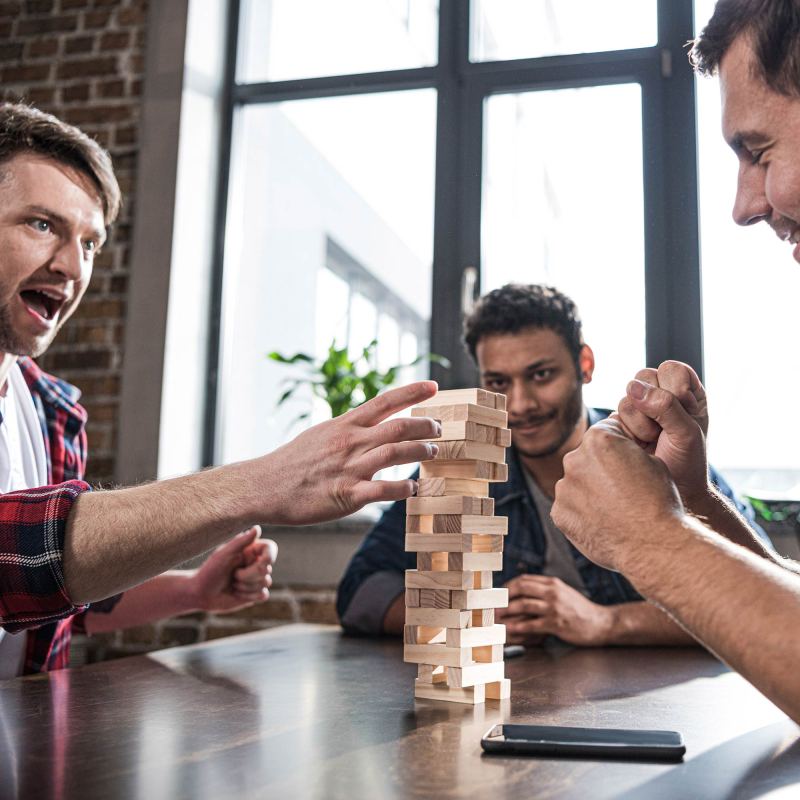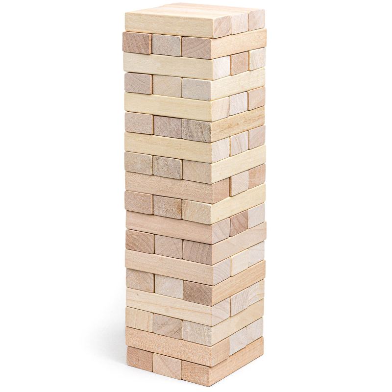 Spend hours of fun with this stacking puzzle set. Made of sturdy, high-quality wood. Comes in an adjustable polyester bag. Includes 54 blocks. Imprinting on bag only. Complies with Prop 65. 6 1/2″ W x 13″ H