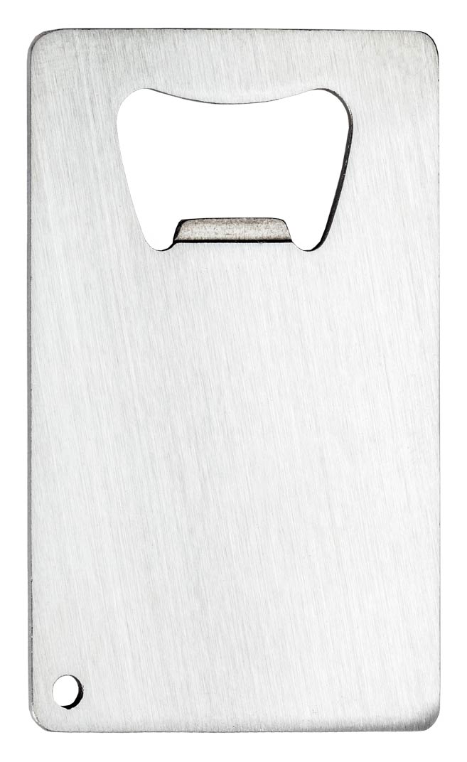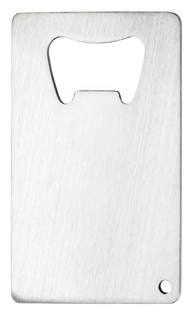 It’s made of brushed stainless steel with a flat, slim, credit card size and shape, measures 2 1/8″ x 3 1/4″, and comes in a silver color. This is perfect for cracking into a cool, refreshing drink at a moment’s notice. For permanent imprint, this item is laser engraved. 2 1/8″ W x 3 1/4″ H