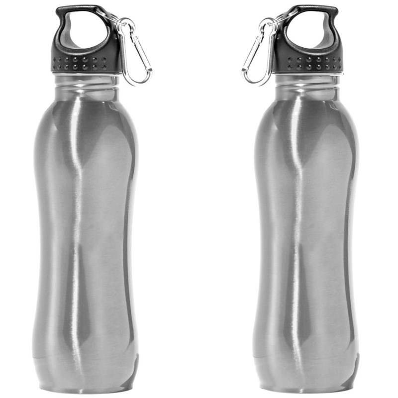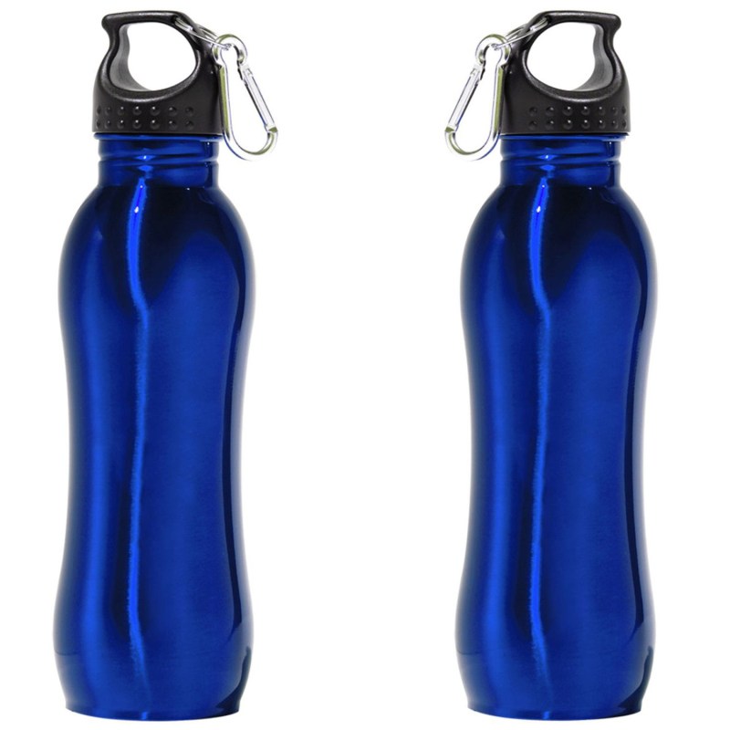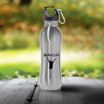 Acadia 26 oz. Stainless Steel Bottle. BPA free. Twist off finger loop cap and carabiner. Wide mouth perfect for ice cubes. Free assembly. Same color, second side imprint at no additional charge. Size: 10 1/8 H x 2 7/8 Diameter / 9 1/4 Upper and Lower Circumference, 8 Center Circumference. Black caps and silver carabiner only. 2.875″ W x 10.125″ H x 2.875″ D