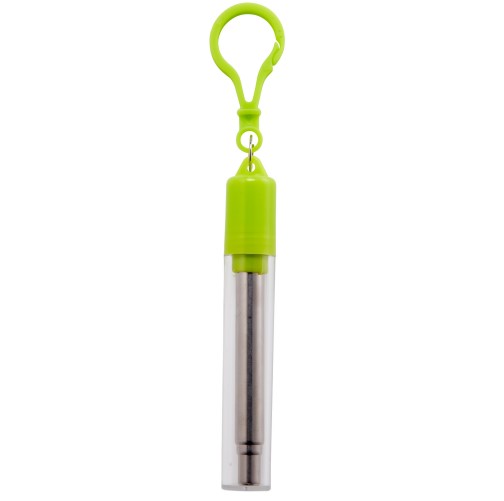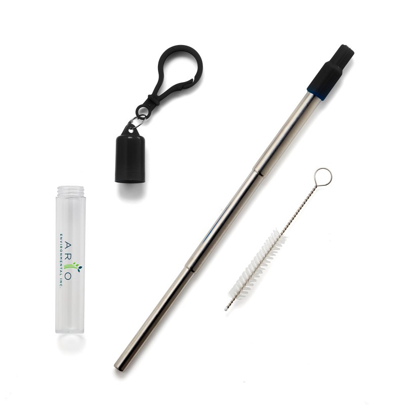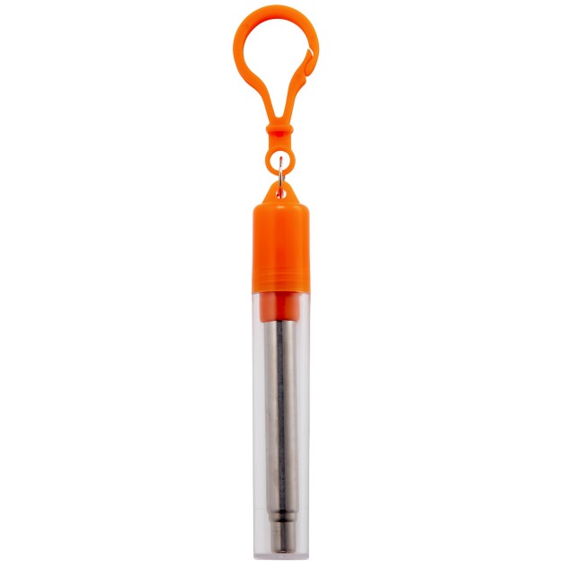 End the use of wasteful plastic straws and start thinking green with these reusable straws that you can easily bring along! This stainless steel straw has collapsible action that allows it to be carried in a plastic carrying case, with a color lid, and clip ready to attach to your keys or favorite chain. The included cleaning brush lets you enjoy a fresh straw every time. 6.25″ W x 0.625″ H