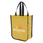 Made Of 80 Gram Laminated Non-Woven, Coated Water-Resistant Polypropylene. 4 ½” Gusset. Reusable. Recyclable. 13 ½” Handles. Spot Clean/Air Dry. Complies with Prop 65. 4.5″ D x 9.25″ W x 11.75″ H