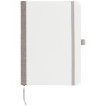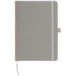 Discover the practicality of our Steinbeck – Two Tone Hard Cover Notebook, crafted for daily use. The front cover features durable recycled PU art card, complemented by a 2-tone RPET gray back and spine. It boasts a convenient gray elastic strap and pen loop on the back cover for secure closure and easy access. Inside, you will find 96 sheets (192 pages) of responsibly sourced paper in ivory color with Collegiate lines, ideal for organized note-taking, whether jotting down creative ideas or detailed meeting notes. The book-bound design ensures durability and a polished appearance, enhancing the professional look and feel. Compact at 5.91″ x 8.27″ x 0.51″, this notebook seamlessly blends style with functionality. Whether used for brainstorming sessions or capturing inspirations on the go, it’s a versatile companion for any writing endeavor. Show your brand’s true colors with ColorJet, our full-color inkjet imprint process. Complies with Prop 65. 8.27″ H x 5.91″ W x 0.51″ D