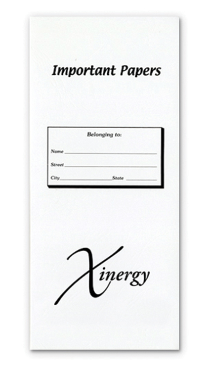 4 3/4″ x 10 1/2″ USA made White Leatherette Stock Document Pouches. Choose from Important Papers, Real Estate Papers, Insurance Documents, Legal Documents. Prices include a one color black imprint in the stock area on the front. 4 3/4″ L x 10 1/2″ W