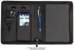 The Stockton 5000 mAh Wireless Charging Journal with FSC® Mix Paper is as practical as it is attractive. With a built-in 5000 mAh powerbank, this refillable journal offers wireless-charging capability, too. It supports wireless charging up to 1A for: iPhone 8/8Plus/X/XS/XS Max/XR/11/11 Pro/11 Pro Max *Samsung Galaxy Note5/S6/S6 Edge/S6 Edge+/S7/S7 Edge/S8/S8+/S9/S9+/Note 9 * Google Nexus 5/6/7 * HTC Droid DNA, 8X * LG G3/G4, Lucid 2/3 * Nokia Lumia 920/930 *. The powerbank includes a USB port for wired charging. The Stockton’s zip-closure folio features a phone pocket, built-in phone stand, and elastic pen loop, while 5.5” X 8.5” bound notebook includes 64 sheets of cream-colored FSC® Mix lined paper. This journal ships in a one-piece FSC®-certified gift box. 1.50″ D x 7.48″ W x 9.65″ H
