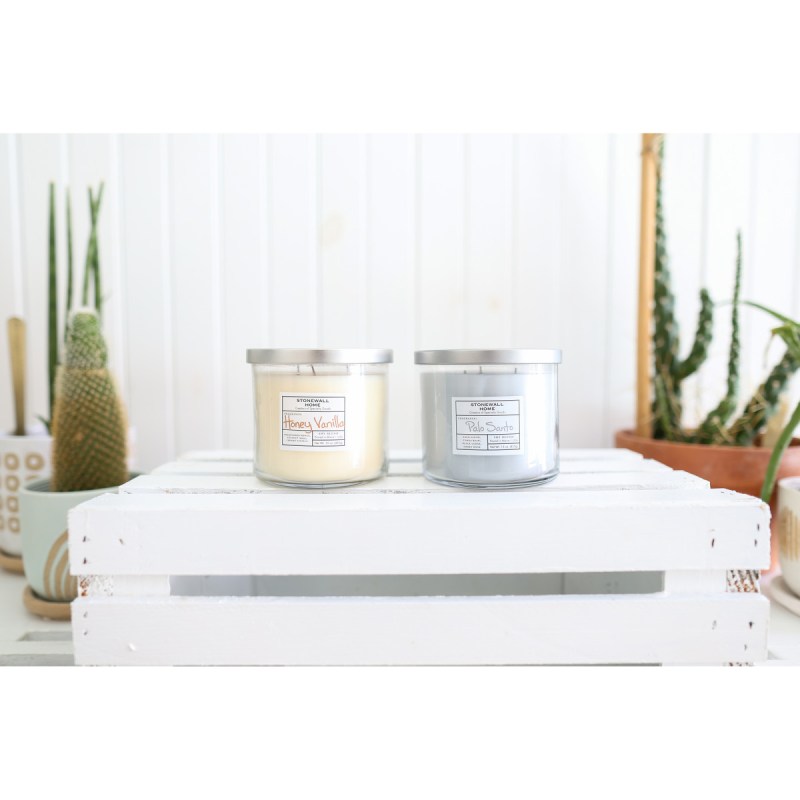 Crafted with a luxurious soy blend for a beautifully creamy appearance and excellent fragrance throw, the modern glass bowl with lid suits any decor. Provides up to 50 hours of fragrance release Palo Santo, has long been burned as a supposed energy cleanser. Honey Vanilla Fragrance Notes: Top: Coconut Milk, Fruity Mid: Wian, Sugary. Complies with CPSIA, Prop 65. 3.8″ W x 6.75″ H x 3.8″ L