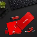 Introducing the versatile Stretchy Travel Pouch complete with a convenient keyring attachment. Elevate your charging game with the sleek UL Viper Power Bank boasting an impressive 1800 mAh charging capacity and UL Certification for guaranteed safety. Stay powered up on-the-go with the UL A+C Wall Charger featuring both A and C outputs. Keep your devices sparkling clean with the vibrant 5 x 5 recycled PET cleaning cloth. Simplify your charging needs with the innovative 3-in-1 charging cable, equipped with multiple USB adapters and patented design. This cable is compatible with iOS devices, Micro USB, and Type C USB, making it the ultimate charging solution for all your devices. Complies with CE, cUL, FCC, Prop 65, UL, UN38.3. 6.75″ L x 3.25″ H