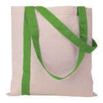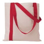 Striped Economy Tote with color stripe flowing into sturdy, elongated 26″ self handles. 15″ W x 15.5″ H