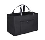 Heavy-duty, all-purpose carry. The Structure Utility Tote handles it all-from groceries to beach gear-with an extra-large capacity, reinforced base, and durable build. Reflective striped handles add visibility and style, while a front pocket keeps essentials handy. Easy to clean and flatten for storage, it’s a versatile tote built for everyday use. Complies with CPSIA, Prop 65. 11″ W x 14″ H x 21″ L