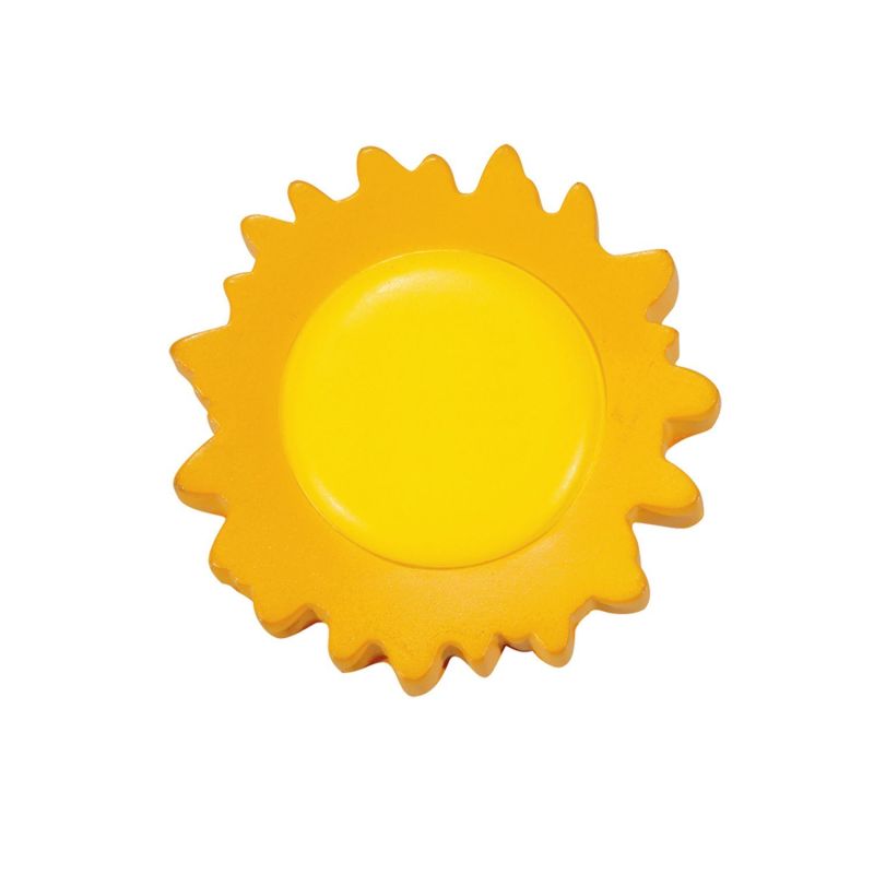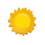 Sun shape stress reliever. This product is not a toy and is not safe for use by children under 3 or pets. Please note: because each polyurethane stress ball is manufactured by hand, no two balls are exactly alike. Placement of second side imprint may not be exactly centered as it is individually hand printed. Factory is not responsible if imprint is not completely legible. Imprint will break and appear uneven due to the textured surface. 3.0″ W x 3.0″ H x 0.75″ D