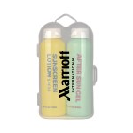 Convenient 2-pack travel kit with sunscreen and after sun gel in PE bottles with PP lids—perfect for on-the-go sun care and skin relief.
