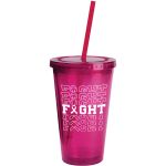 Take a bite out of the competition with this brand-boosting tumbler! Sweat resistant double-wall acrylic tumbler. Flexible, soft plastic and color coordinated straw. Perfect as a promo gift, includes twist on lid with straw. BPA-free, reusable & recyclable. Digital version available – see AHDOLI16″. Complies with Prop 65. 4″ W x 6.25″ H