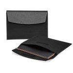 Protect Your Laptop the Sustainable Way!The laptop sleeve has a leather flap closure with high-quality velcro and is available in two sizes, 13″ and 15″.Upcycled felt (gray or black) with bonded leather trim (available in 9 colors) featuring silver accent stitchingUnit cost includes 1 location/1 color hotstamp OR 1 location blind deboss on leather trim. Complies with FSC, Prop 65. 15.5″ W x 10.5″ W