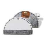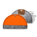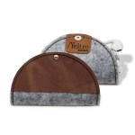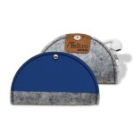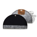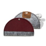 Protects earbuds and prevents cord from tangling. Body in upcycled felt (made out 100% used water bottles) and a silver knob closureCrafted in Texas, USAUpcycled felt (gray or black) with bonded leather trim available in 9 colors and comes with silver accent stitching. Unit cost includes 1 location/1 color hotstamp OR 1 location blind deboss on leather trim. Complies with FSC, Prop 65. 4″ Diameter