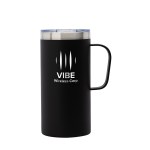 The Sutcliff camping mug is your best companion for road trips and outdoor activities, but also perfect for home and office use. This mug has a 20 oz. capacity and has a double wall, vacuum insulated construction that keeps your hot drink hot for 12 hours and cold drink cold for 24 hours. Its ergonomic handle is comfortable to hold and makes it easy to carry. The Sutcliff has a durable powder coat finish that prevents scratches and provides a sweat proof, no-slip exterior. FDA compliant and BPA Free. Complies with Prop 65. 4 1/2″ W x 6 5/8″ H x 3 1/4″ D