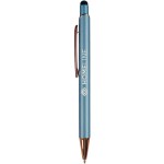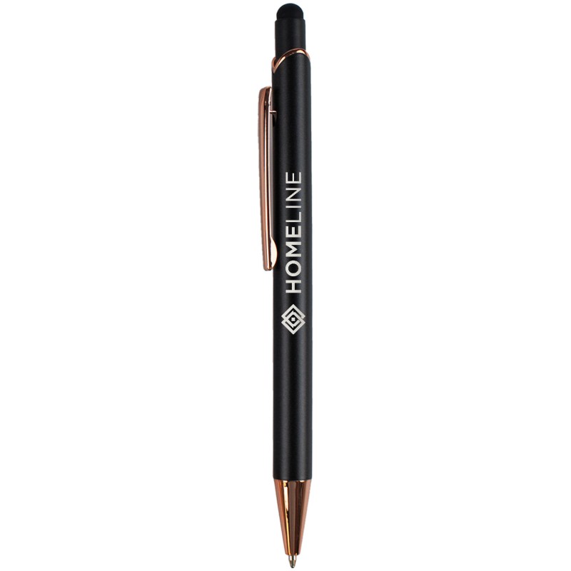 The Swan Comfort Stylus offers a refined, ergonomic design with a soft-touch finish for exceptional writing comfort. Featuring elegant rose gold accents that complement its sophisticated color options, this pen combines sleek aesthetics with functionality. Its built-in stylus makes it perfect for touchscreen devices, while the smooth blue ink ensures a premium writing experience. Ideal for professional settings and brand promotions, the Swan Comfort Stylus is the perfect blend of style, comfort, and versatility. Complies with Prop 65. 5.6″ L x 0.39″ Diameter