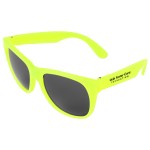 Always be in style with these fun-in-the-sun style glasses while protecting eyes from harmful rays from the sun. The vibrant colors help to stand out in the crowd. Features dark, ultraviolet protective lenses with a UV Rating of 400. Ideal for summer apparel shops, sporting goods stores, beach festivities and surf shops. 2″ H x 5 3/4″ W