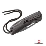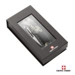 The SwissForce® Exaction Pocket knife is your ultimate knife for the home, shop or the outdoors. Featuring a 420 Stainless Steel blade, metal clipper and rope handle. Available in black or camo and packaged in a die-cut foam gift box. A great gift for the outdoorsman in your life. 8.5″ W x 1.5″ H